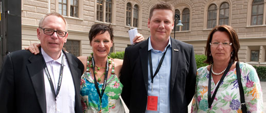 Kommunals nya ledning: Anders Bergström, tredje vice ordförande; Annelie Nordström Hellander, ny förbundsordförande; Tobias Baudin, ny förste vice ordförande samt Lenita Granlund, ny andra vice ordförande och avtalssekreterare.