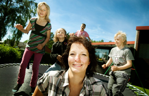 Det är roligt att vara så många, men jobbigt också för det blir mycket bråk ibland, sammanfattar barnen ute vid studsmattan. Om de saknar något? — Att få äta glass och godis varje dag.