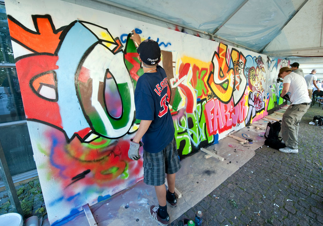 Det var kö för att få måla varsin piece, som sen raskt målades över för att ge plats till nästa. Att se ungdomarna stå med skissen i ena handen och varsamt förverkliga den på väggen med en uppsjö av tekniska färdigheter imponerade.