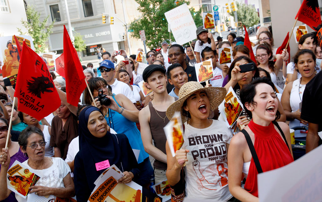 I väntan på utslaget fortsätter protesterna. Sida vid sida med invandrarrättsrörelsen går allt som oftast fackliga organisationer. Facken hävdar att lagen underlättar för arbetsgivare att exploatera papperslösa, och dessutom riskerar leda till diskriminering av personer som inte ser ”amerikanska” ut.