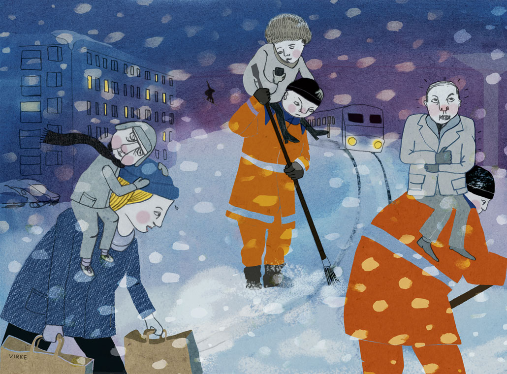 Snön yr och vallarna växer. För brandmän, hemtjänstpersonal, sophämtare, järnvägsarbetare och andra blir arbetsdagarna extra tuffa.