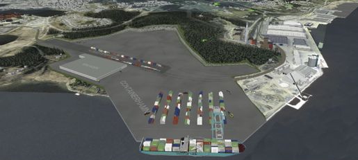 Det är naturligtvis inte riktigt klokt, med tanke på att en containerterminal är en omlastningsplats av utomjordiska dimensioner, och bör läggas så långt från civilisationen som möjligt. Å andra sidan är fastlandssidan av Alnösundet sen länge redan förstört av sågverket och av hamnen.
