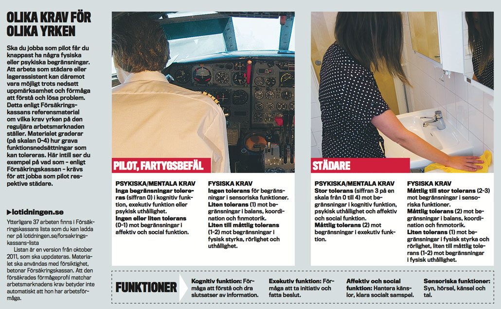 4. Din handläggare vid Försäkringskassan får bedömningen och beslutar om du ska få sjukpenning, eller ska försöka arbeta. Till stöd har handläggaren listan som beskriver hur förlåtande olika arbeten på den reguljära arbetsmarknaden är för funktionsnedsättningar.