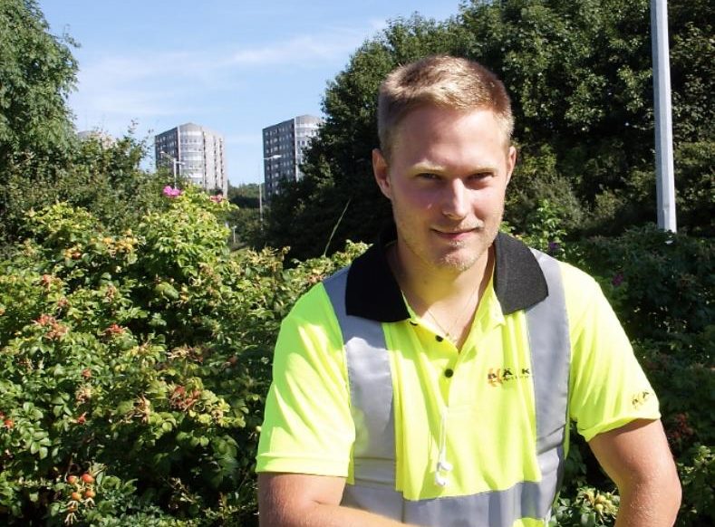 Jag träffar honom vid McDonalds i Askim i Göteborg. Just nu jobar han på Bäcks installation. Han drar fiber, företaget jobbar som underentreprenör åt Telia.