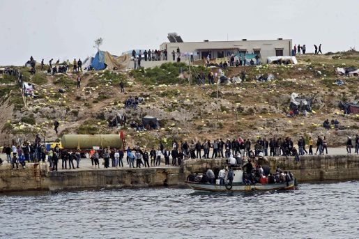 En båt med flyktingar anlöper Lampedusa. Foto AP / Scanpix.