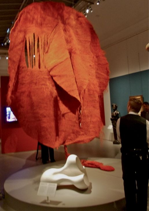 För här ser vi ett visuellt såväl som konceptuellt starkt textilt verk av den polska konstnären Magdalena Abakanowicz som verkligen kliver fram och hävdar sin plats i rummet. Ett textilt verk som både bejakar materialet och tekniken samtidigt som det när det utfördes bröt mot många av normerna för hur vävnader skulle se ut. Det delvis grova och råa i uttrycket kommer sig delvis av att en del av materialet i vävnaden består av gamla rep och trossar som återvunnits och färgats. Att motivet på den textila skulpturen sedan är en monumental vagina gör inte heller hennes val att använda material från en hamn mindre laddat.