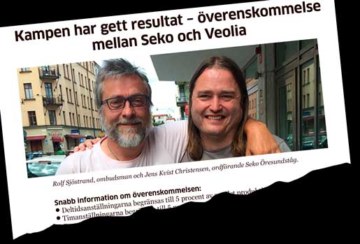 I hela branschen kommer alltså tillsvidareanställningar att stimuleras, tror Seko. Vid Veolia Öresundståg införs också en formell gräns för timanställningarna motsvarande fem procent av det totala antalet produktionstimmar. Samtidigt får deltidsanställningarna motsvara högst fem procent av produktionen. Enligt Valle Karlsson innebär detta en minst lika skarp begränsning som den Seko strejkade för: ett tak för timanställningarna vid 40 000 timmar om året.