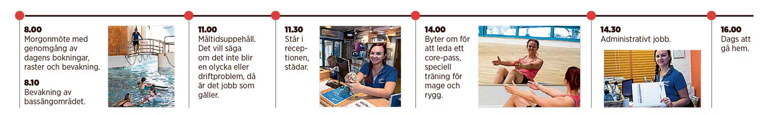 Hennes titel är alltså badvärd. I simhallen ansvarar var och en för sin egen säkerhet. Och barn under 12 år ska ha en vuxen med sig i vattnet. Det duger inte att sitta och fika påklädd.