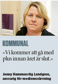 – Vi har haft fler pensionsavgångar än vanligt i år. Vi skriver in många nya medlemmar, men inte tillräckligt många för att ersätta dem som går i pension. Det hämtar vi hem i höst. Vi kommer att gå med plus innan året är slut. Det finns inget annat alternativ, förklarar Jenny Hammenstig Lundgren, ansvarig för värvning på Kommunal.