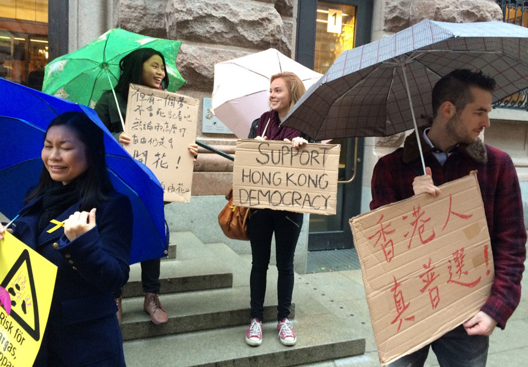 Demonstration för Hongkong utanför riksdagshuset. Foto: Göran Jacobsson