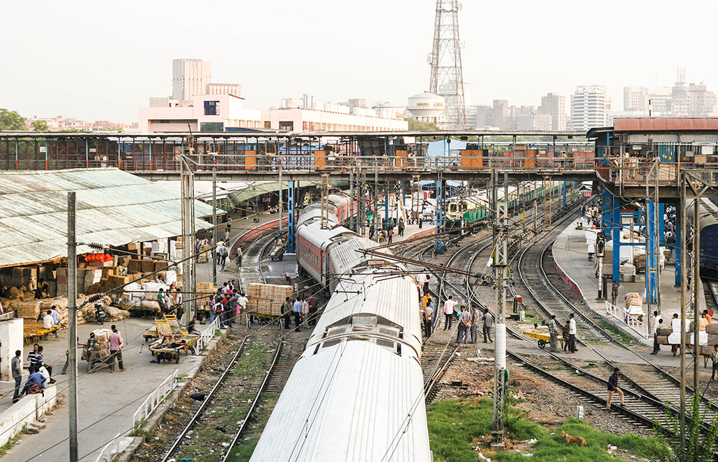 När tåget nästan är framme i Delhi stannar det, i väntan på en signal för att få fortsätta. Folk hoppar ner på spåret för att gå den sista sträckan från Faizabad, genom den fuktiga förmiddagen.