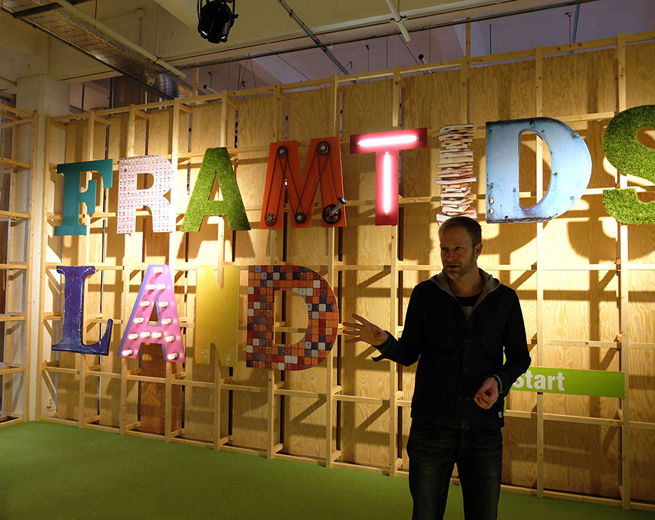 ”Framtidsland” vill få besökaren att ställa frågor om hur vi egentligen har det i dag. Hur länge jobbar vi? Vad jobbar vi med? Hur påverkar det klimatet?