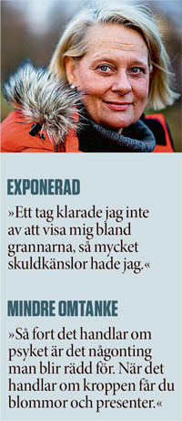 – Ett tag klarade jag inte av att visa mig bland grannarna, så mycket skuldkänslor hade jag. Jag kände inte igen min kropp, jag kände inte igen mitt psyke. Det är jobbigt att exponera sig, för det känns som att man har en stämpel i pannan där det står ”sjuk”, berättar Eva.