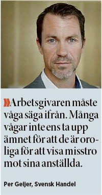– Arbetsgivaren måste våga säga ifrån. Många vågar inte ens ta upp ämnet för att de är oroliga för att visa misstro mot sina anställda.