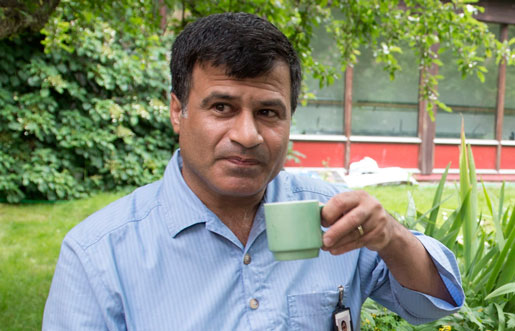 Han är regionalt skyddsombud för Kommunal i Stockholm på halvtid. Den andra halvan jobbar han som undersköterska på Dalens servicehus i södra Stockholm.