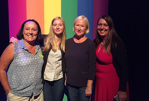 Tove Möller, Swedavia, Frida Pihl, Skogsstyrelsen, Maria Uggla, Proffice och Liselott Andersson, Eon, träffades i Pride House. Foto: Eva Vaihinen