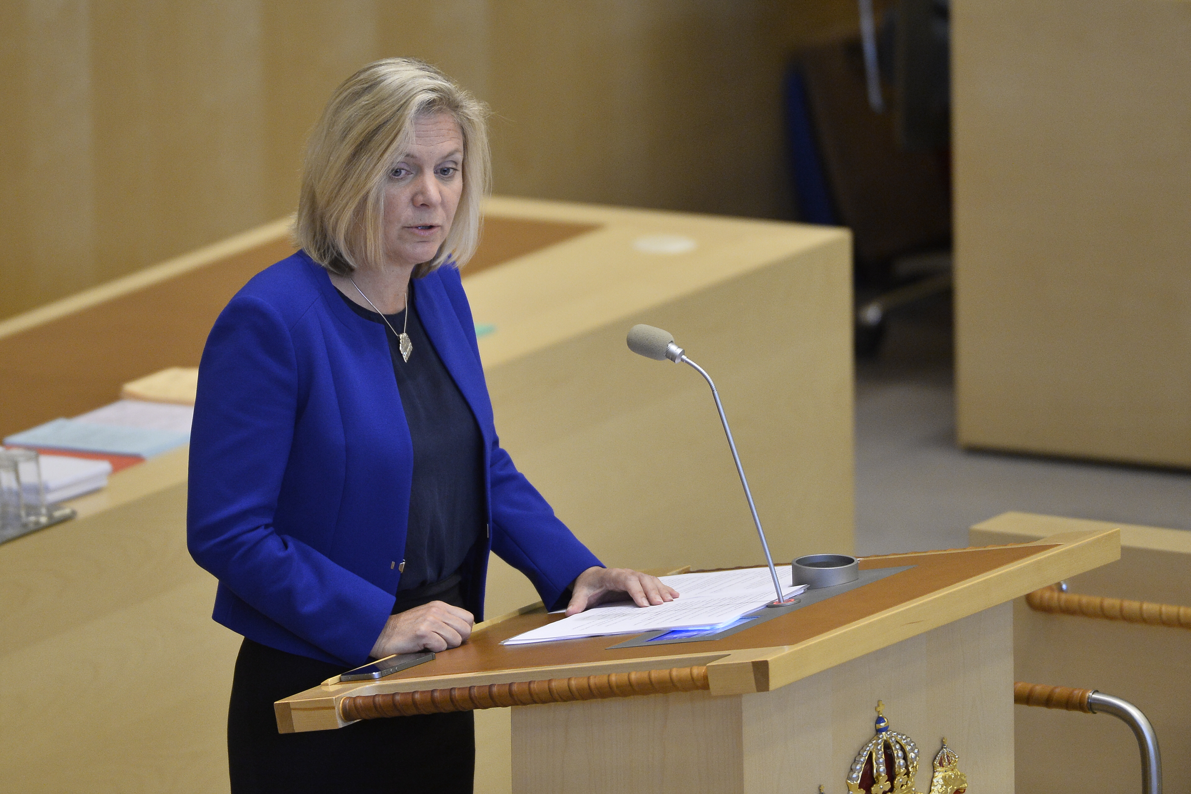 Finansminister Magdalena Andersson presenterar regeringens budget.
