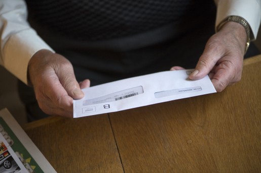 AVESTA 20131010 En manlig pension‰r tittar p ett fˆnsterkuvert Foto: Fredrik Sandberg / TT / Kod 10180