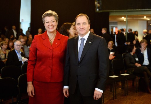 STOCKHOLM 20151012 Ylva Johansson, arbetsmarknadsminister (S), och statsminister Stefan Lˆfven (S) som bjudit in till en nationell samling, Sverige tillsammans, fˆr att bidra till att fˆrb‰ttra nyanl‰ndas etablering.