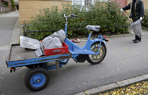 STOCKHOLM 20100923 Fathi Arwina samlar skr‰p med sin moppe. Tidigare var han engelskl‰rare i Libyen men nu jobbar han Ât det sociala fˆretaget Fittja drift och underhÂll som bland annat ‰gnar sig Ât fastighetsskˆtsel och som har som aff‰rsidÈ att ge unga invandrare utan arbetslivserfarenhet jobb. Foto: Janerik Henriksson / SCANPIX / Kod 10010