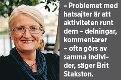 – Problemet med hatsajter är att aktiviteten runt dem – delningar, kommentarer och så vidare – ofta görs av samma individer. Och att antalet unika individer inte analyseras. I den här typen av digital opinionsbildning måste man vara mycket medveten om den duplicerande effekten som de här individerna arbetar med.