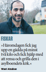 – Häromdagen fick jag upp en gädda på minst två kilo och fick hjälp med att rensa och grilla den i asylboendets kök, berättar pappa Alsabae med ett stolt leende.