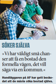 – Enligt vår handläggare där har vi väldigt små chanser att få en bostad den formella vägen, det vill säga via en kommun. Det innebär att vi själva måste försöka hitta någonstans att bo, annars kan vi bli kvar på asylboendet hur länge som helst.