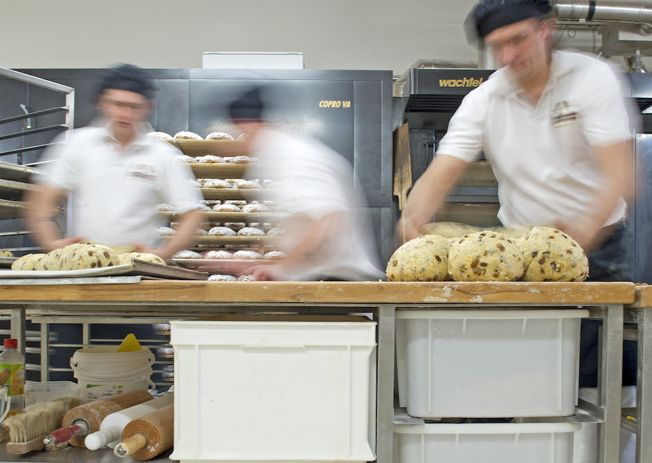 Workers form dough for the Christmas cake Original Dresdner Christstollen (Dresden Stollen) in the Morenz bakery in Dresden, eastern Germany, Thursday, Nov. 21, 2013. The stollen cakes contain dried fruit and are covered with sugar, usually eaten during the Christmas season. The Morenz bakery belongs to the German Association for the Protection of the Dresden Christmas Stollen which allows bakeries to produce and sell this cakes worldwide under the registered trademark"Echter Dresdner Christstollen". (AP Photo/Jens Meyer)