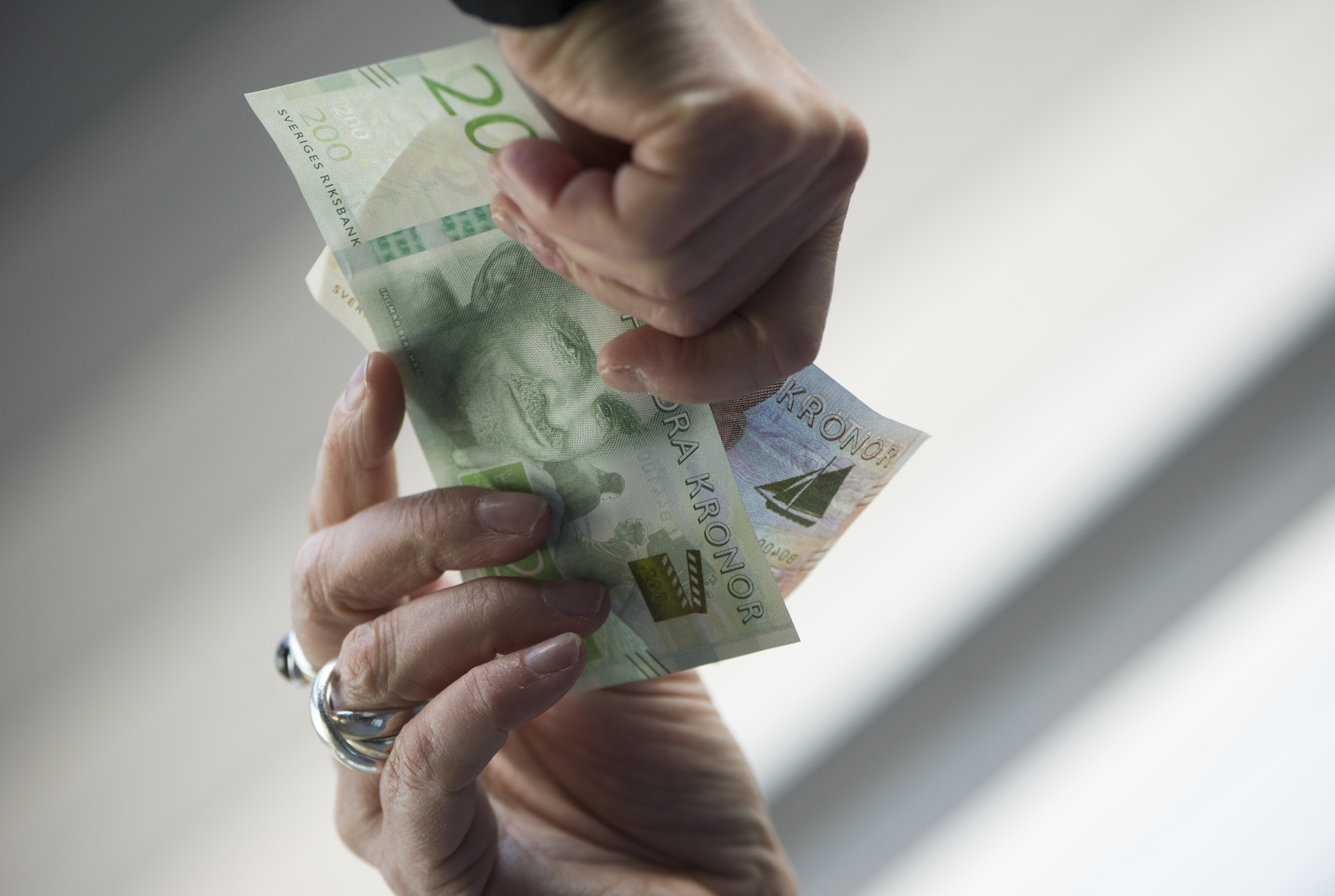 STOCKHOLM 20151002 H‰nder hÂller i de nya svenska sedlarna. Foto: Fredrik Sandberg / TT / Kod 10080