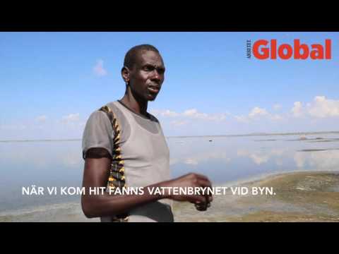 – På bara några månader har vattnet dragit sig tillbaka flera hundra meter, säger Mika Lore. Han försörjer sina barn med att fiska efter att alla getter dött, men nu verkar det också bli svårt.
