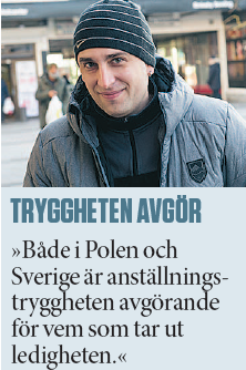 Men med dottern, som nu är elva år, var det mamman som var hemma. Då bodde familjen i Polen, där han hade en betydligt högre lön som arbetare på ett stålverk. Både i Polen och i Sverige har lönen och anställningstryggheten varit avgörande för vem som ska ta ut ledigheten och hur länge, berättar han.