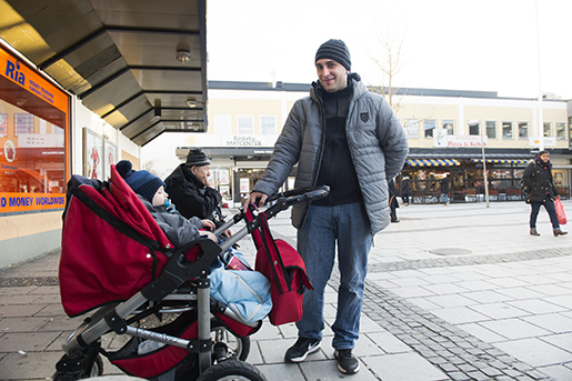 Rinkeby torg, en vacker morgon i början av december. Om ett par veckor ska två ”pappamånader” bli tre. Med andra ord reserveras en tredje månad i föräldraförsäkringen för vardera föräldern från 1 januari 2016.