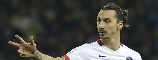 PSG's Zlatan Ibrahimovic gestures, during the French League One soccer match between Nice and Paris Saint Germain, Friday, Dec. 4, 2015, in Nice stadium, southeastern France. (AP Photo/Lionel Cironneau)