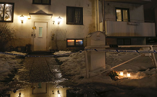 G÷TEBORG 20160125 T‰nda ljus och blommor utanfˆr det hus d‰r en 22-Ârig kvinna knivdˆdades i ett brÂk p ett HVB-hem i Mˆlndal fˆr ensamkommande flyktingbarn d‰r hon jobbade. En av de boende, en pojke i 15-ÂrsÂldern, misst‰nks fˆr dÂdet. Foto: Adam Ihse/TT kod 9200