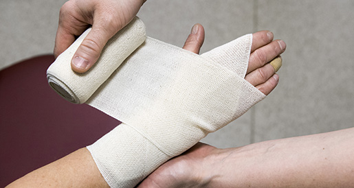STOCKHOLM 20151113 Sjukskˆterska l‰gger bandage p hand och handled. Foto: Claudio Bresciani / TT / Kod 10090