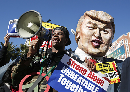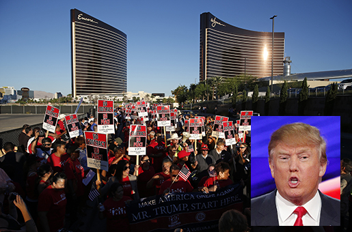 Vid lyxhotellet Trump International Hotel i Las Vegas, som Trump äger, har ledningen det senaste året systematiskt motarbetat och trakasserat arbetare som försökt bilda en lokal fackklubb. Trots det har servicefacket Unite Here lyckats organisera fler än 500 arbetare på hotellet.