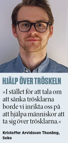 – Vi har prövat dessa åtgärder, och det funkar inte. Det som händer är att vinsterna ökar. För att få effekter skulle lägstalönerna behöva sänkas till nivåer som inte är socialt acceptabla. Istället för att tala om att sänka trösklarna borde vi inrikta oss på att hjälpa människor att ta sig över trösklarna, säger Kristoffer Arvidsson Thonäng.
