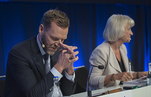 Telias koncernchef och vd Johan Dennelind på stämman i tisdags.
