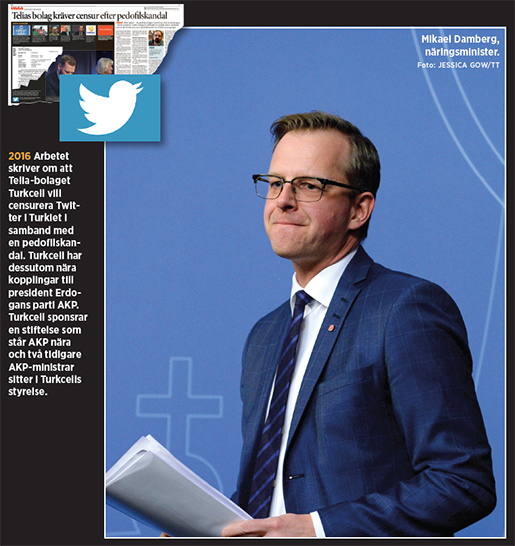 2016: Vänsterpartiets näringspolitiska talesperson kräver att Telia säljer Turkcell. Telias styrelseordförande Marie Ehrling avböjer att medverka i intervju i Arbetet och näringsminister Mikael Dambergs pressekreterare uppger, vid denna tidnings pressläggning, att ministern inte har möjlighet att svara på Arbetets frågor.