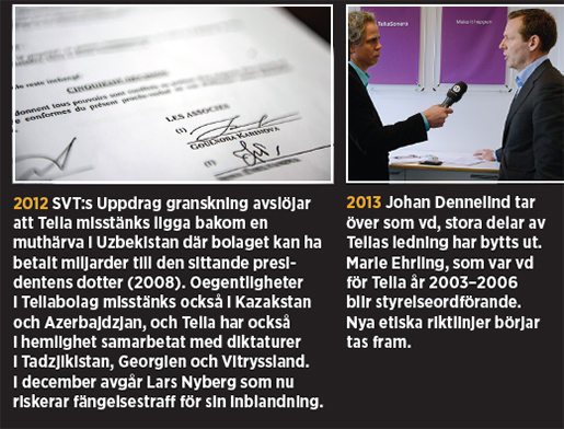 Det har varit några tuffa år för Telia. 2012 avslöjade SVT:s Uppdrag granskning att bolaget mutat sig till en 3G-licens i Uzbekistan genom att ”köpa” en licens av dottern till den sittande presidenten. Det visade sig även att Telia, där svenska staten är största ägaren, haft kontakt med flera diktatorer i forna Sovjetrepubliker och att det förekommit hot, mutor och avlyssning i samband med Teliabolagens affärer.