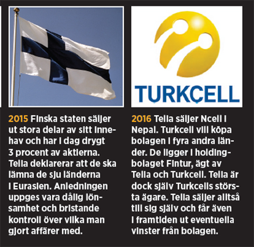 Turkcell är i sin tur, tillsammans med Telia, den andra stora ägaren i Fintur som äger de fyra bolagen som Telia vi sälja. Det är en mycket komplicerad ägarstruktur kring Telias bolag.