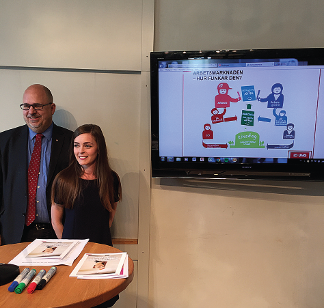 LO:s ordförande Karl-Petter Thorwaldsson och skolinfoansvariga Sannah Bäcklin presenterade satsningen. Foto: Liv Beckström
