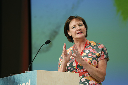 STOCKHOLM 2016-05-31 Kommunals avgÂende ordfˆrande Annelie Nordstrˆm inledningstalar vid Kommunals kongress p City Conference Center i Folkets hus i Stockholm p tisdagen. Foto: Christine Olsson / TT kod 1043