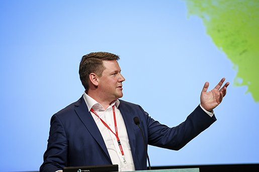 STOCKHOLM 2016-06-01 Tobias Baudin, vice ordfˆrande i LO och tidigare Kommunals vice ordfˆrande, talar infˆr valet av ny fˆrbundsordfˆrande under fackfˆrbundet Kommunala kongress i Folkets hus i Stockholm. Foto: Marcus Ericsson / TT / Kod 11470