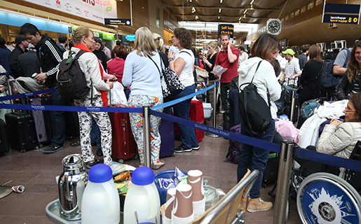 STOCKHOLM 20160611 Passagerare p Arlanda flygplats som ‰r strandade med anledning av pilotstrejken p SAS p lˆrdagsmorgonen. Tiotusentals SAS-resen‰rer drabbas av den pÂgÂende pilotstrejken. Fotboll i Frankrike och charters‰song gˆr att trycket p flyget ‰r extra hÂrt. Ombokningsmˆjligheterna ‰r sm eller obefintliga.. Foto Sˆrenm Andersson / TT kod 1037