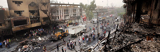 Iraks premiärminister Haider al-Abadi utlyste tre dagars landssorg när han i går besökte platsen för självmordsdådet, och han har lovat att straffa förövarna. Han har även beordrat förändringar i säkerhetsarbetet i huvudstaden.