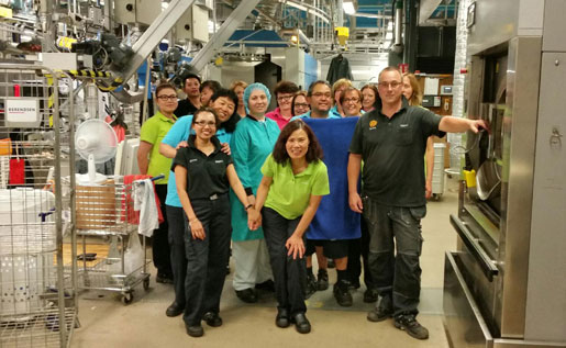 Kampviljan är stor hos tvätteripersonalen på Berendsen i Helsingborg. Foto: Sven-Olof Jörgensen