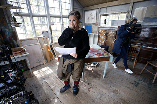 Regissören själv under inspelningen av Den allvarsamma leken. Foto: linn malmén