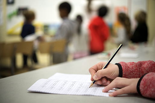 STOCKHOLM 20141217 En lÂgstadieelev i Ârskurs 2 i Sofia skola skriver p ett papper med en penna Foto: Jessica Gow / TT / Kod 10070