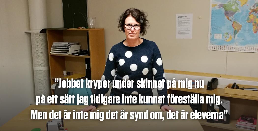 – Jobbet kryper under skinnet på mig nu på ett sätt jag tidigare inte kunnat föreställa mig. Men det är inte mig det är synd om, det är eleverna.